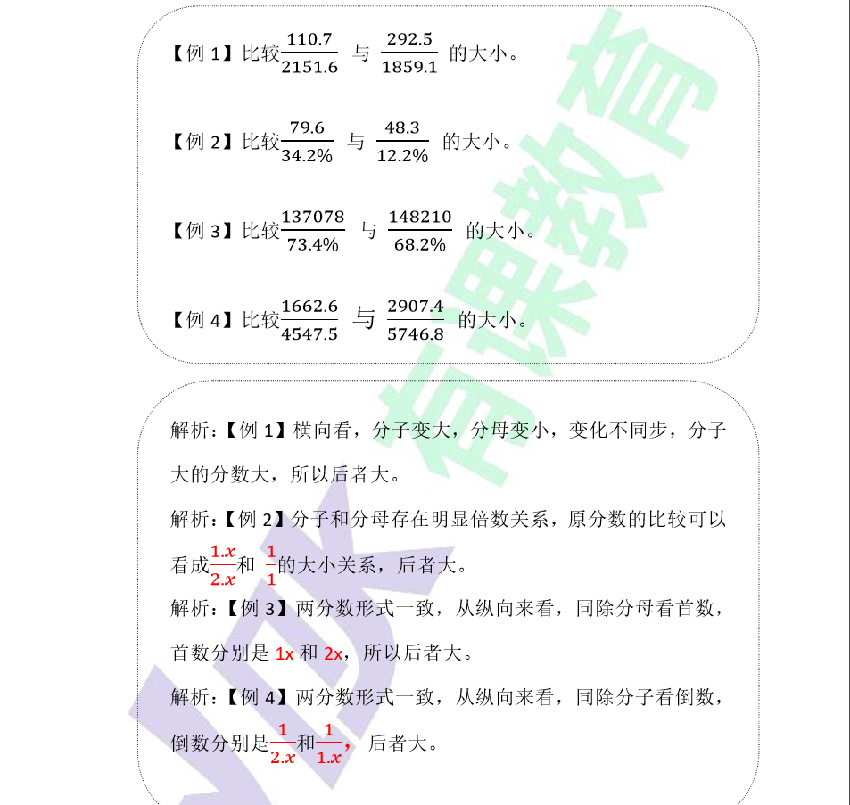 【资料分析】分数比大小之观察比较法